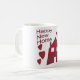 Brightly coloured Scottish-themed mug for new nestbuilders, with house and heart motifs in Royal Stewart tartan pattern.. The perfect gift for Scottish friends and family.