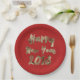 Happy New Year 2018 Red Gold Typography Paper Plate