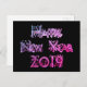 Happy New Year 2019 Elegant Black Pink Stars Text Holiday Postcard