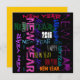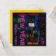 Designed for 8 letters : NEW YEAR (7 + space) with year+ happy. Design on square flat card invitation with black background (in front) and yellow background in back. You can easily change background colour and text (colour, font, size and position) by clicking the personalize or customize button. Matching greeting card, paper napkin, paper plate, gift bag and more... Joy and unconventional greeting for Happy New Year 2019.