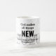 Stylish teal COFFEE MUG for the New Year 2020 with the message GOD MAKES ALL THINGS NEW with HAPPY NEW YEAR in BLACK typography. The 2020 is written in lighter silver grey script, with the CUSTOMIZABLE Bible verse from Revelation, which you can personalize with your own custom text, name of church/organization, or your name. There is optional text which you can delete as required. This is an ideal New Year giveaway for work colleagues (or employees), church groups, etc. and with customization can be suitable for any vision-themed event. Matching items are available in the NEW YEAR Collection by Berean Designs.