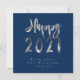 Happy New Year 2021 Chic Blue Silver Grey Script Holiday Card