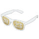 Happy New Year in elegant white typography over gold glitter. Chic sparkle party favour sunglasses for a new years eve host to use at your big bash.