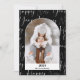 Happy New Year 2024 modern festive 4 photos with arch shape and bold script pattern in white on black elegant and simple design with bold text and 4 of your family photos.