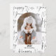 Happy New Year 2024 modern festive 4 photos with arch shape and bold script pattern in black and white elegant and simple design with bold text and 4 of your family photos.