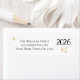 Happy New Year 2025 return address label, with elegant black script typography on a white background. With customizable lettering, you can add your own message. A gold snowflakes pattern add accents making a great addition to your New Year's Greeting cards and letters.