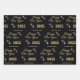Modern and elegant Gold Black Happy New Year 2025 Elegant Sparkles Wrapping Paper Sheets with white sparkles on a black background and in a trendy script. Simple gift wrap for wishing your friends and family happy New year.