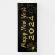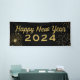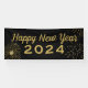 Elegant black and gold "happy new year 2025" party banner with fireworks and an editable year.