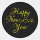 Happy New Year 2026 Black and Yellow Script Classic Round Sticker