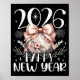 Happy New Year 2026 Disco Cute Bow Flower New Year Poster