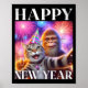 Happy New Year 2026 Funny Cat Bigfoot Party Art Poster