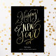 Happy New Year Black Gold Script Modern Business Foil Holiday Card