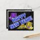 HAPPY NEW YEAR! Blue Text w/Party Hats Holiday Postcard
