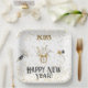 Make your New Years Eve Party extra special with these custom black and gold paper plates that match the invitations and lots of other party supplies in our shop!  There's a confetti poppers and gold and black glitter wands, as well as an alarm clock with lots of stars, confetti and ribbons bursting forth from it.  The plate has gold glitter scattered all about.  It has the upcoming year at the top in gold, then Happy New Year in black.