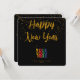 A simple and stylish business or company black and gold "Happy New Year" card design that can be customized to your logo and text. Customize further with your own card colour and texture.