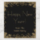 A black Happy New Year bottle label sticker with a printed gold glitter design and your family name that you can customize. Edit using the text editor to make your own stickers for wine, champagne, beer, and other bottles to use for New Year's Eve party decor or holiday gifts.