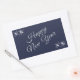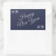 Modern and elegant Happy New year rectangular sticker with white sparkles on a navy blue background and trendy handwritten script. Simple sticker for wishing your friends and family happy New year. You can change the text if you want.