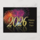 Happy New Year Gold 2026 Fireworks Holiday Postcard