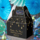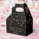 Happy New Year Gold and Black String Lights Favour Box. This design features elegant gold glittering string lights with the words Happy New Year. Personalize this custom design with your family name, year, and custom celebration greeting. Perfect for a New Year's Eve Party!