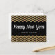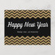 Happy New Year Gold Glitter Black Chevron Stripes Holiday Postcard
