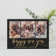 Happy New Year Gold Script 3 Photo Collage Black Holiday Card