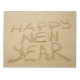 This design features an image of the text "HAPPY NEW YEAR" written in sand with a stick.