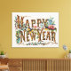 Happy New Year in Tree Trunks, Acorns and Flowers Canvas Print