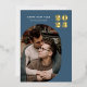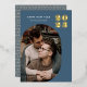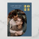 Happy New Year Modern Blue Photo Gold Foil Holiday Card