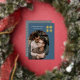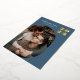 Modern personalized blue 2023 New Year Photo Greeting Card with real gold foil, a round geometric frame for your picture of choice and a modern geometric pattern on the back. All background colours - front and back - can be changed if you like.