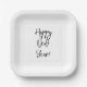 Happy New Year! Modern Text Chic Black White Fun Paper Plate