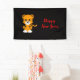 Year of the tiger illustrated with cartoon tiger and Chinese calligraphy character.