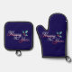 Pretty, Happy New Year design, is featured on this oven mitt and pot holder set for the New Year. Use yourself or give as a host or hostess gift for the New Year dinner! Has silver quilted heat protection and hanging loops too.
