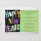 Beautiful Black & Lime Green Background new Years Eve Night Party Invitation featuring, "Happy New Year" appears at the side in multiple colour font. Customize with your personal greeting, family names and individual names.