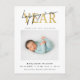 Modern elegant New Year's birth announcement postcard. Design features single photo of the baby, happy new year script in modern lettering, birth stats, name, your message and festive gold polka dot pattern on the back of the card. Perfect way to Announce the birth of your baby and wish everyone a Happy New Year!