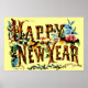 http://www.zazzle.com/stanrail ; Happy New Year message on A Light yellow background. It is made with wooden Letters, with blue and red flowers and and green leaves. A cheerful way to begin the New Year.