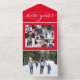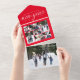 Send one of a kind New Year greetings with this unique holiday photo card. Featuring an elegant type treatment saying "wishing you a happy New Year" along with a collage of seven photos, this design also features a detachable section with a single photo. Include a family update on the back. Best of all, this can be folded and sent without an envelope. The vivid red background colour is merry and festive but other colours are available in the collection.
