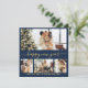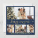 Happy New Year Script Blue Gold 4 Photo Collage Holiday Card