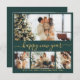 Happy New Year Script Green Gold 4 Photo Collage Holiday Card