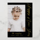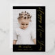 Happy New Year Script Two Photo Black Foil Holiday Card