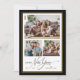 This New Years greeting card features elegant script typography and space for 3 photos. The design is accented with a gold and black border. Add your own personal message to the back of this holiday card.