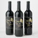 This wine bottle label features a graphic of two glasses of sparkling wine, colourful confetti and the script text that reads: Happy New Year. Custom text at the bottom allows you to personalize with your name.