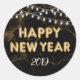 Happy New Year String Lights Gold Balloons Black Classic Round Sticker