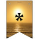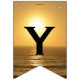 The holidays, special days and seasons of our lives help us mark and track the passage of time, collecting memories as we share traditions, time, food, music, gifts, and greeting cards with each other. Welcome in a new year at your New Year's Eve party with this bunting flags banner, which can be personalized with your own letters. (However, "Happy New Year" is ready to order.) Set against a shimmering golden Half Moon Bay Sunset. (Photography by Martie Hevia | Design by Blue Beach Song™)