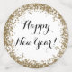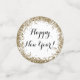 A white Happy New Year table decor confetti with a printed gold glitter design and a script message. Edit using the text editor to make your own message on each piece if you'd like to. Perfect for both a casual and fancy New Year's Eve get together to scatter on tables and surfaces.
