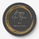 Welcome the New Year with a sleek design featuring "Happy New Year" framed by a gold stain ring on a chic dark grey background. Add a custom date and name to create a personalized and stylish greeting.