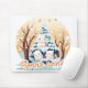 A small family of cats celebrating the New Year in a park, on a frozen fountain and playing with colorful paper boats
