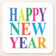 Decorate with a unique touch and colour your New year's party with these pretty paper coasters and celebrate with your family and friends. This design features a colourful and modern typography text that says Happy New Year, in blue, orange, green, yellow, fuchsia, aqua and purple colours.