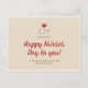 Celebrate a healthcare hero with this warm and thoughtful Nurses Day postcard. The design features a nurturing hand illustration cradling a heart, symbolizing the care and love nurses provide daily. "Happy Nurses Day to you!" is gracefully scripted in a rich red hue, conveying heartfelt appreciation and recognition. The addition of a personalized greeting makes this card an intimate token of gratitude. Ideal for honouring the dedication and compassion of nurses everywhere.