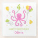 A happy octopus is holding colourful balloons and surrounded by friendly sea animals.