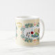 Happy Passover Coffee Mug with with wishes text "Happy Passover" in Hebrew and "Wishing you and those you love peace, health, and happiness, at Passover and always." Vintage floral frame, Matzah - Jewish traditional bread for Passover seder ceremony, pesach plate. Red Wine bottle and four wineglass, "Kiddush cup", prayer book.. Home > Kitchen & Dining > Drinkware > Mugs & Cups. Design with text template. Personalize them by adding name or wishes text.